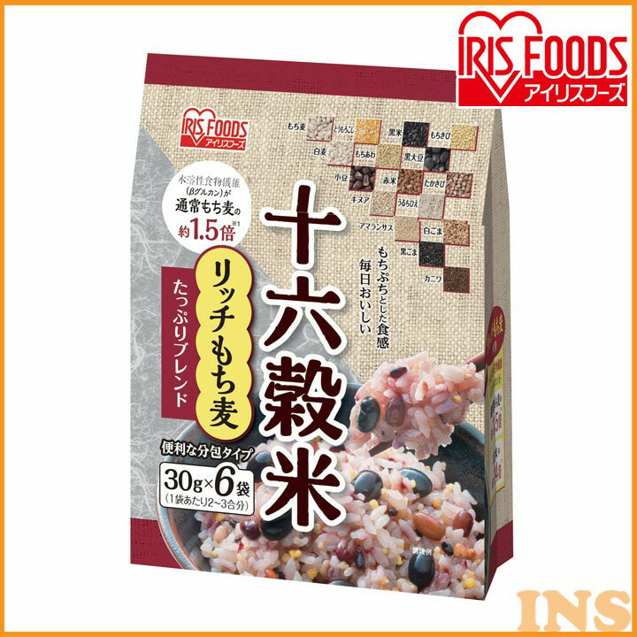 十六穀米 リッチもち麦たっぷりブレンド 180g(30g×6袋) スーパーフード もちむぎ食物繊維 雑穀 穀物 リッチもち麦 アマランサス キヌア たかきび もちきび もちあわ ひえ 黒米 赤米 白麦 黒大豆 小豆 とうもろこし カニワ 白ごま 黒ごま アイリスフーズ