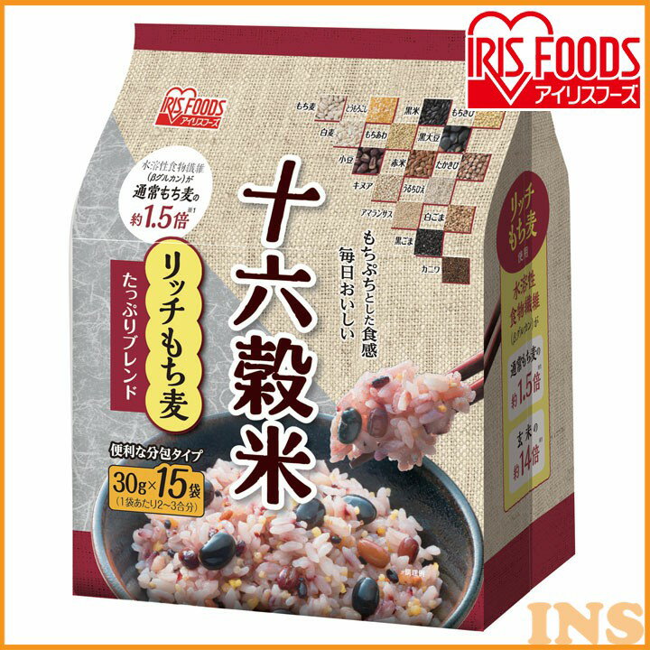 十六穀米 リッチもち麦たっぷりブレンド 450g(30g×15袋) スーパーフード もちむぎ食物繊維 雑穀 穀物 リッチもち麦 アマランサス キヌア たかきび もちきび もちあわ ひえ 黒米 赤米 白麦 黒大豆 小豆 とうもろこし カニワ 白ごま 黒ごま アイリスフーズ