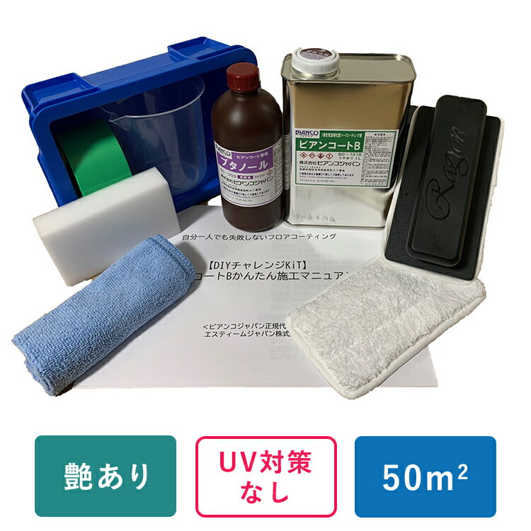 ビアンコートB かんたん施工<DIYチャレンジKiT> 艶有/UV対策なし【標準 50平米対応/1L】 施工マニュアル・施工方法動画DVD付 <ビアンコジャパン正規特約販売店>フロアコーティング UV ガラスコーティング DIY 床 ワックス フローリング保護 ペット滑り止め