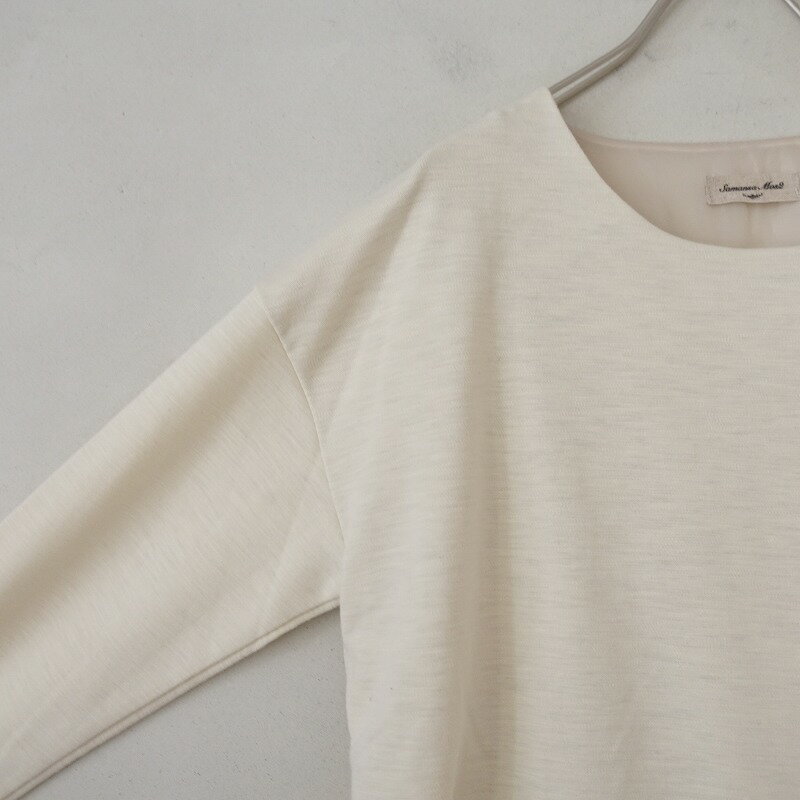 表記サイズ:M 実寸サイズ:肩幅53cm, 身幅46cm, 袖丈42cm, 着丈(中心)96cm, ウエスト幅(ゴム)35cm, ヒップ幅55cm (多少の誤差はご了承ください) 素材:上身頃-ポリエステル65%,コットン35% スカート-コットン100% 裏地-ポリエステル100% デザイン:Samansa Mos2 のドッキングワンピースです。