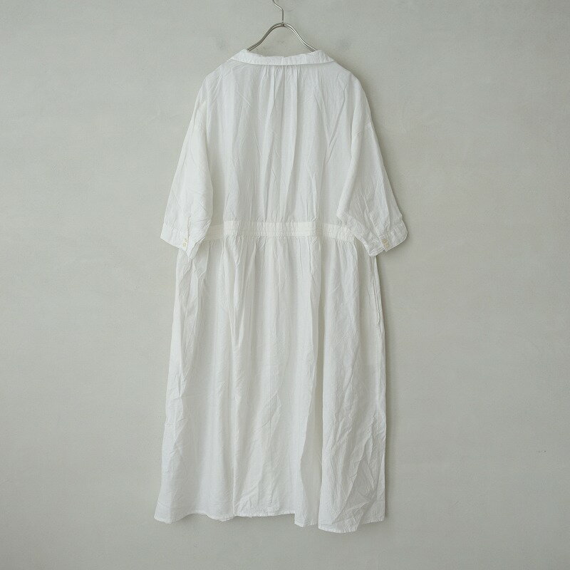表記サイズ:F 実寸サイズ:身幅57cm, 着丈112cm, 裄丈60cm, ウエスト幅(ひも入り)58cm, ヒップ幅80cm (多少の誤差はご了承ください) 素材:綿85%,麻15% デザイン:Samansa Mos2 のコットンリネン七分袖ロングワンピースです。