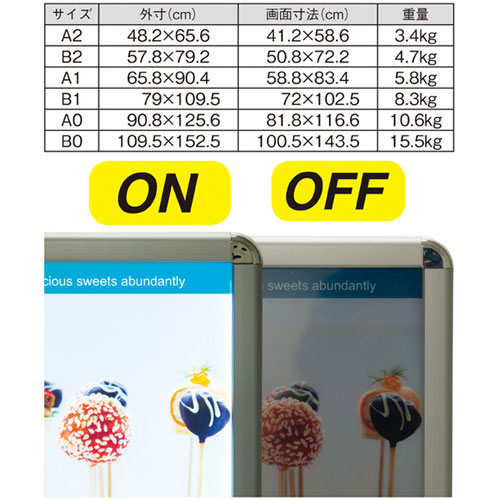 商品の仕様●内照明式看板に比べ薄型・軽量化したLEDパネルです。